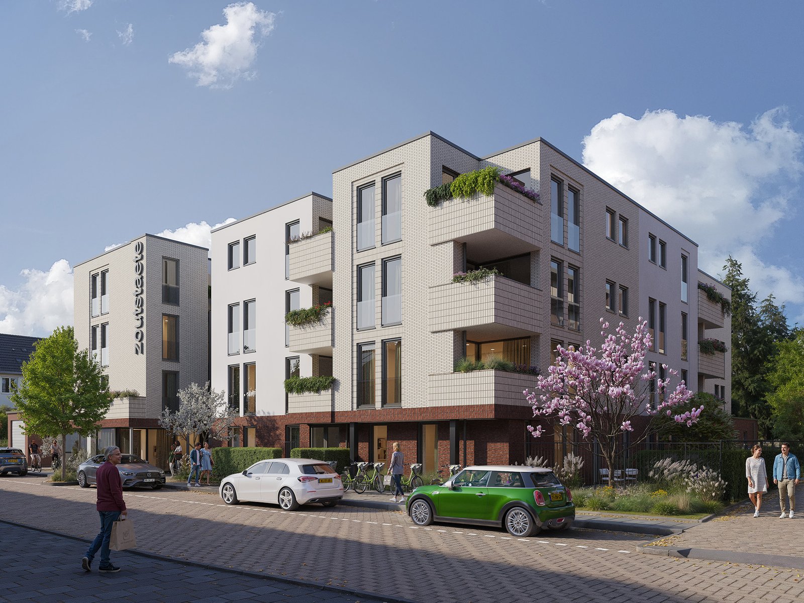We starten met de bouw in 2026 en naar verwachting worden de appartementen eind 2027 / begin 2028 opgeleverd.